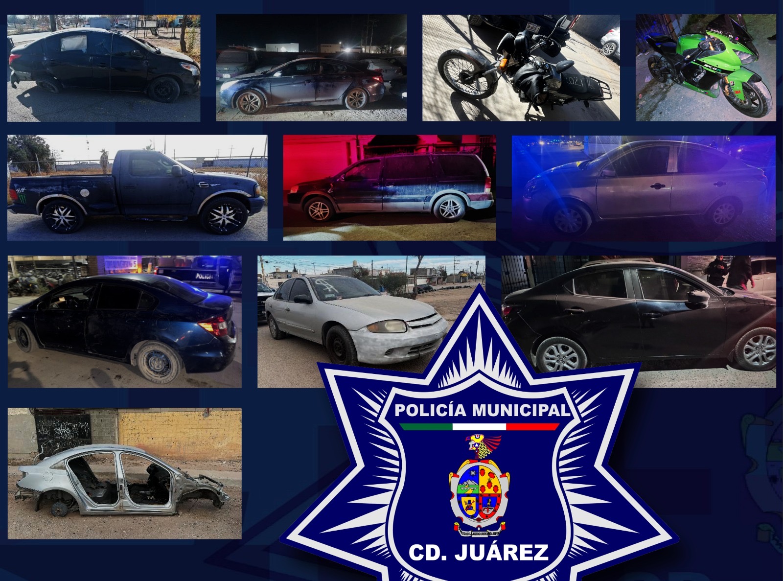 A 05 de enero de 2026.-Elementos de la Secretaría de Seguridad Pública Municipal, adscritos a los distintos distritos policiales, lograron la recuperación de 12 vehículosque cuentan con reporte de...