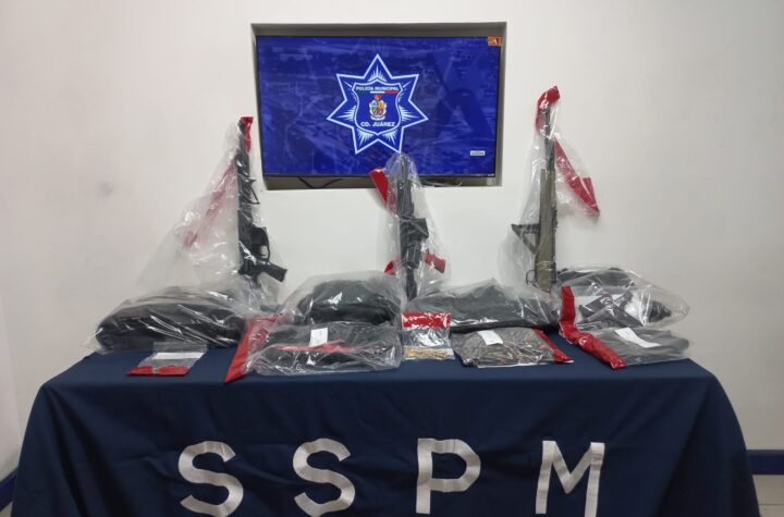 A 04 de enero de 2026.- Agentes de la Secretaría de Seguridad Pública Municipal aseguraron un arsenal de armas de fuego y...