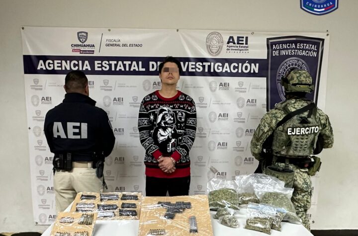 Encuentran AEI y SEDENA arma de fuego, cargadores, cartuchos útiles y droga durante cateo a vivienda