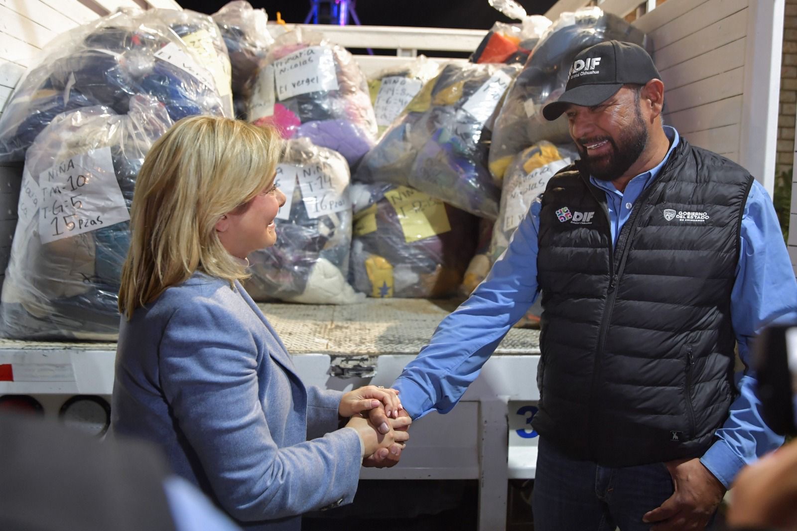 En el parque El Colibrí de la ciudad de Chihuahua, dio salida a los primeros vehículos que llevarán las prendas...