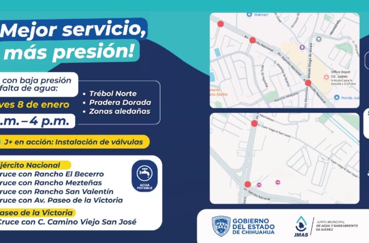 Este próximo jueves 8 de enero, el Departamento de Eficiencia Física de la Junta de Agua y Saneamiento de Juárez...