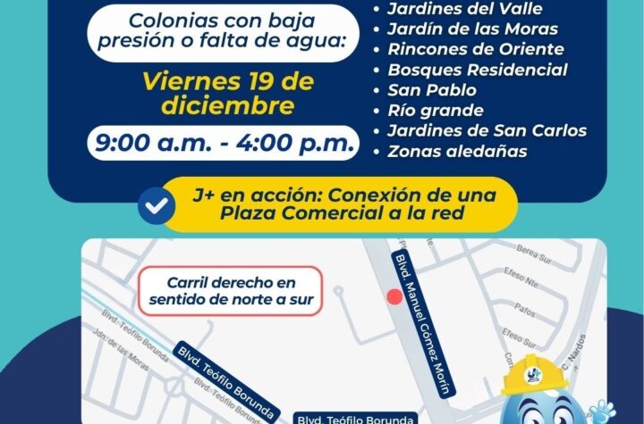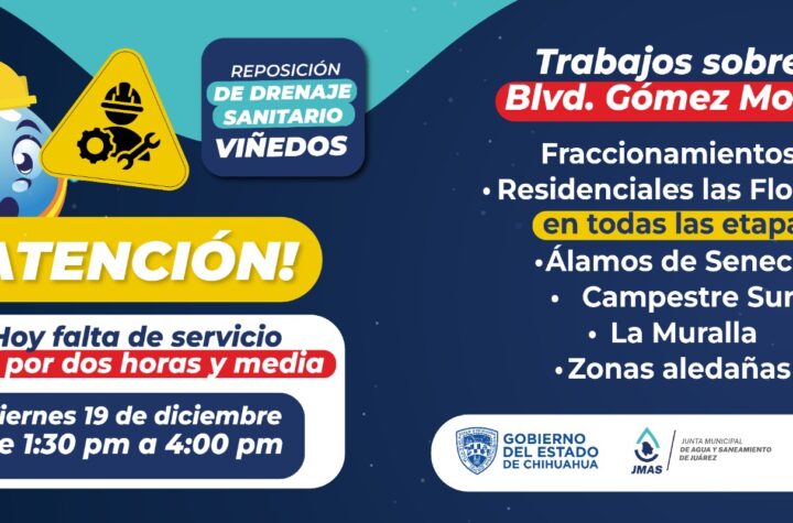 Este viernes 19 de diciembre, la Junta de Agua y Saneamiento de Juárez, trabajará en la conexión de una Plaza...