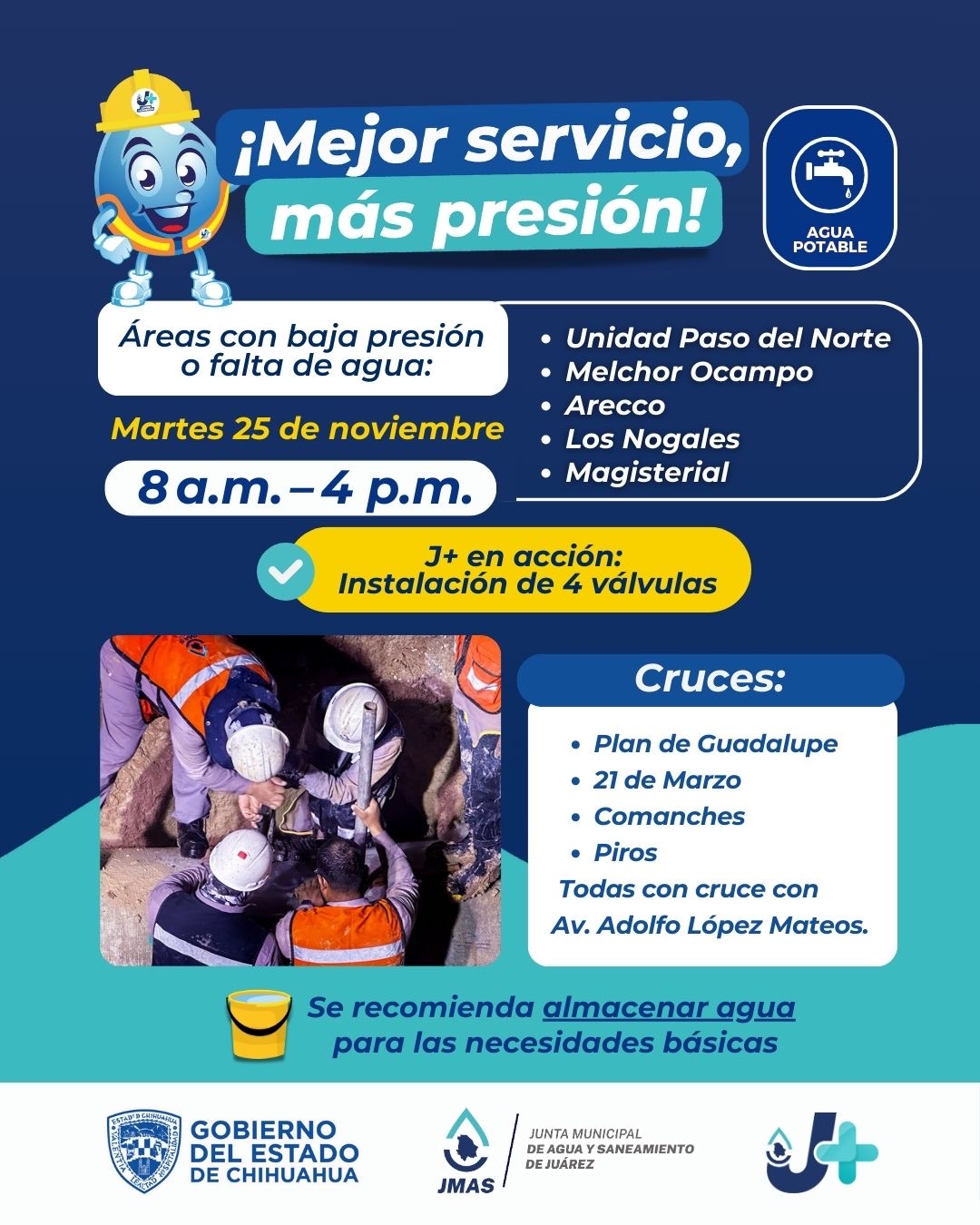 Este martes 25 de noviembre, el Departamento de Eficiencia Física de la Junta de Agua y Saneamiento de Juárez, instalará...