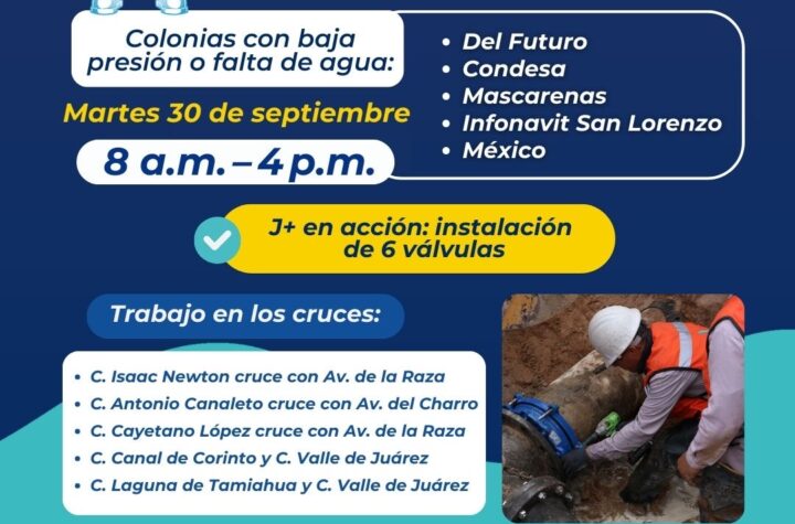 Este viernes 26 de septiembre, la Junta de Agua y Saneamiento de Juárez conectará dos fraccionamientos y unos locales comerciales...