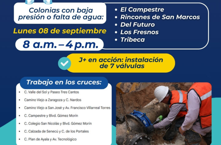 Este lunes 8 de septiembre, el Departamento de Eficiencia Física de la Junta de Agua y Saneamiento de Juárez, instalará...