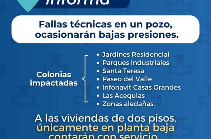 Debido a un desperfecto mecánico en el pozo que surte de agua potable una amplia zona de la ciudad, se...