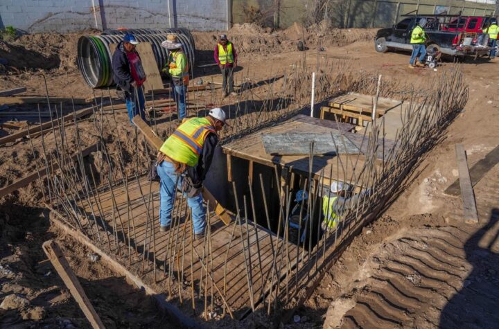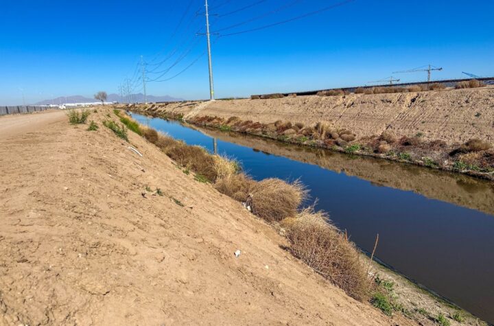 La Junta de Agua y Saneamiento de Juárez, construye un canal de agua tratada que conducirá el flujo desde la...