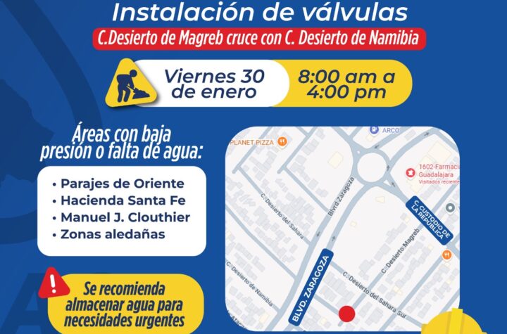 La Junta de Agua y Saneamiento de Juárez, a través del departamento de Eficiencia Física, instalará 2 válvulas de seccionamiento,...