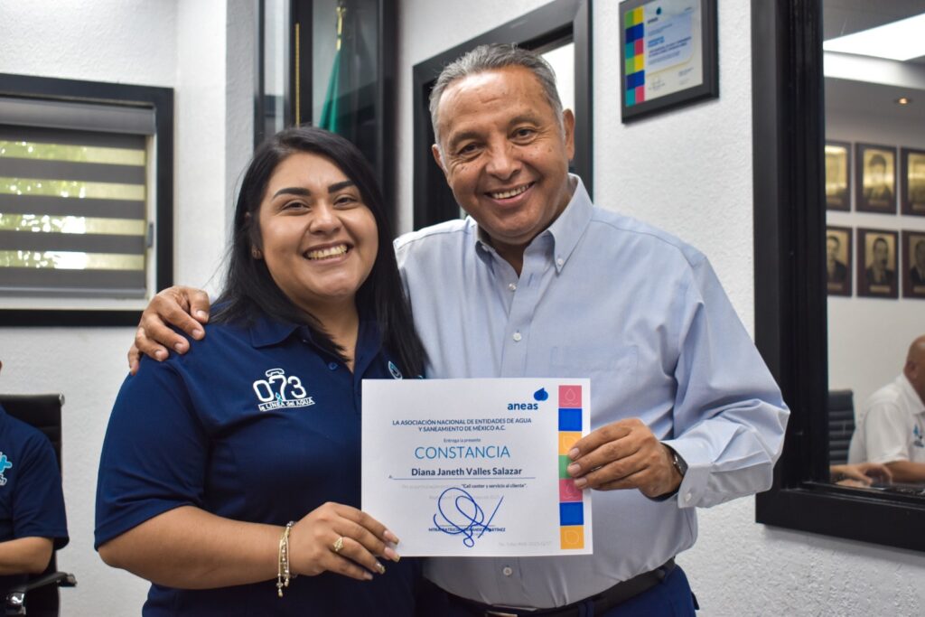 La Junta de Agua y Saneamiento de Juárez entregó reconocimientos a colaboradores del Centro de Atención telefónica (CAT), quienes concluyeron satisfactoriamente un curso de capacitación impartido los sábados y que tuvo una duración de 16 horas.