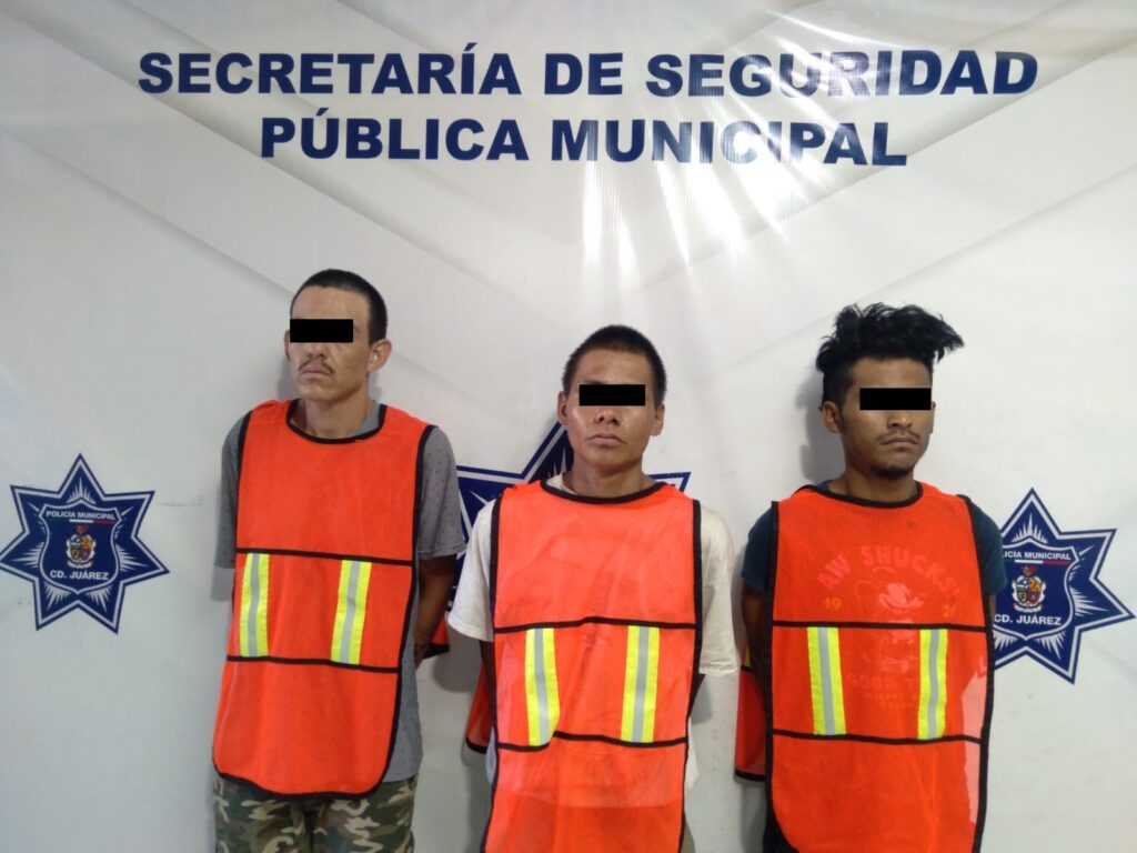 A 20 de junio de 2025-. Elementos de la Secretaría de Seguridad Pública Municipal arrestaron a Josué Guadalupe H. M., Martín R. D. y Carlos Antonio C. H., por su presunta responsabilidad en la comisión del delito de posesión de vehículo con reporte de robo y delitos contra la salud.