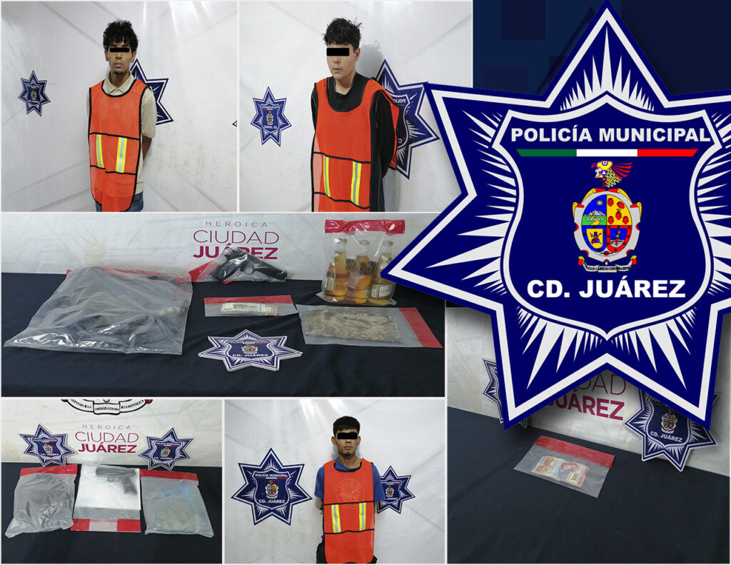A 22 de junio de 2025.- Elementos de la Secretaría de Seguridad Pública Municipal capturaron en hechos distintos a tres sujetos que eran buscados por cometer diversos robos con lujo de violencia, mismos que reunían las características físicas de personas que aparecen en videos de cámaras de vigilancia de tiendas afectadas, asegurándoles dos armas de postas, dinero efectivo y marihuana.