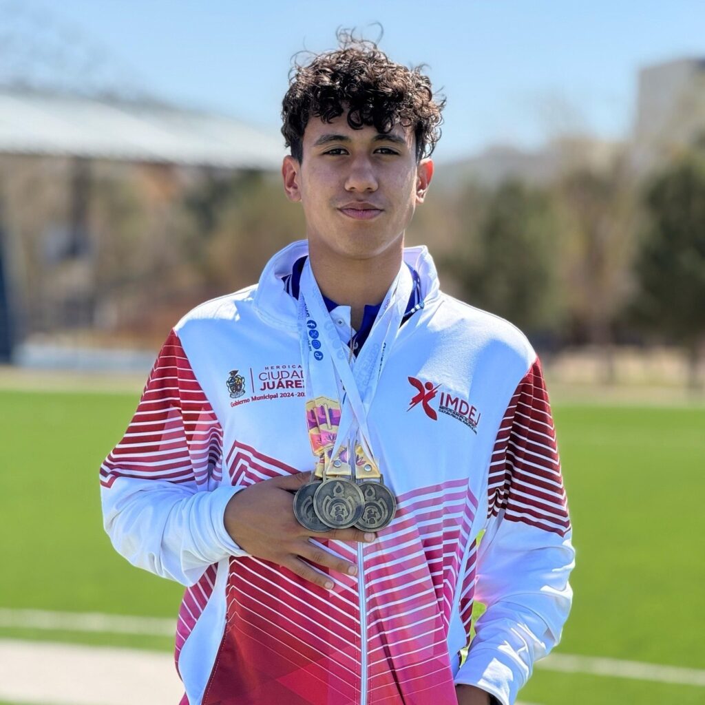 El campeón juarense, durante el pasado Campeonato Estatal de Atletismo logró también el primer lugar en 80 y 150 metros y relevo combinado.