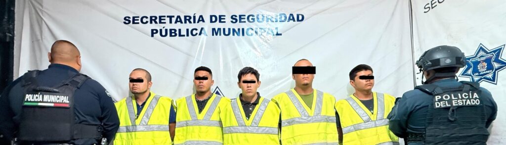 A 26 de junio de 2025.- Elementos de la Secretaría de Seguridad Pública Municipal adscritos a la estación de policía del Distrito Sur y de la Policía del Estado arrestaron a Cristian Antonio S. C., Eduardo Daniel H. M., Alejandro N. R., Luis Fernando J. V. y Luis Alfredo A. C., por su presunta responsabilidad en la comisión del delito de homicidio en grado de tentativa y delitos contra la ley federal de armas de fuego y explosivos, mismos que serán investigados por varios eventos de alto impacto ocurridos en la ciudad.