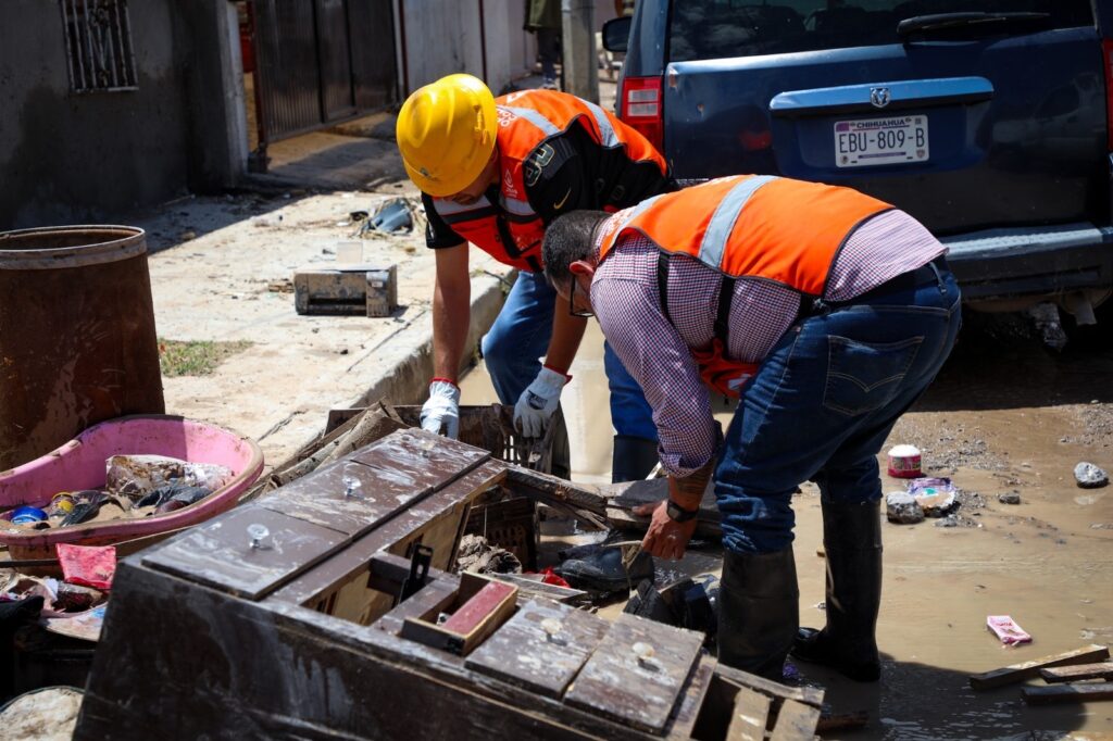 Siguiendo las instrucciones de la gobernadora Maru Campos, de estar cerca de la gente cuando más se necesita, los operativos de limpieza de la J+ continuarán hasta dejar transitables las calles y liberar los accesos a las viviendas que sufrieron daños.
