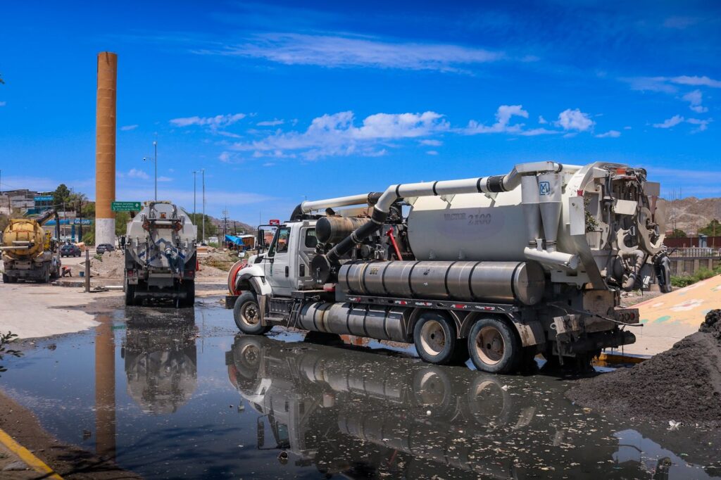 Para llevar a cabo las labores de limpieza, fue necesario cerrar temporalmente el cuerpo norte del bulevar Norzagaray, debido a que, en el sitio operan siete unidades de inyección y succión (vactor), dos cuadrillas de trabajadores, un camión de volteo y personal técnico encabezado por el coordinador del distrito 3 de Alcantarillado de la J+.