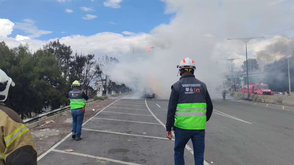 Las llamas alcanzaron unos 30 metros de altura. La zona fue acordonada por bomberos, protección civil y otras autoridades; una vez que se controló el fuego, esperaron a que se vaciara la pipa lo más pronto posible para reducir los riesgos.