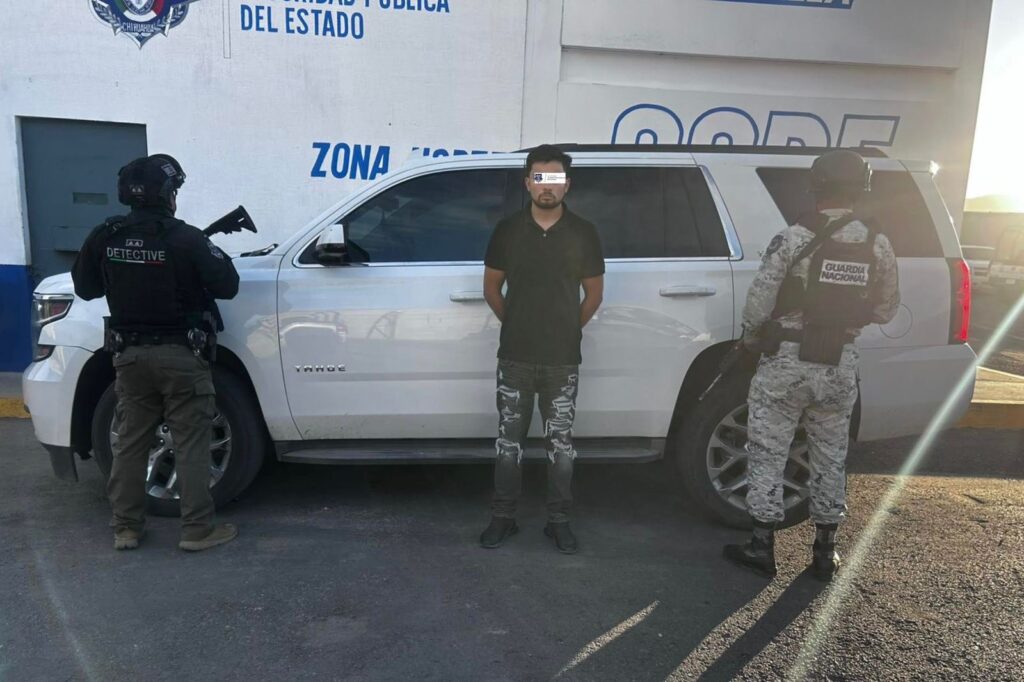 La Secretaría de Seguridad Pública del Estado (SSPE), en colaboración con Guardia Nacional, llevó a cabo la detención de Pedro Daniel L. N., de 21 años, en Ciudad Juárez, luego de que ingresara a México desde Estados Unidos y emprendiera la huida a bordo de una camioneta tipo Suburban, tras evadir la revisión vehicular en los puentes fronterizos.