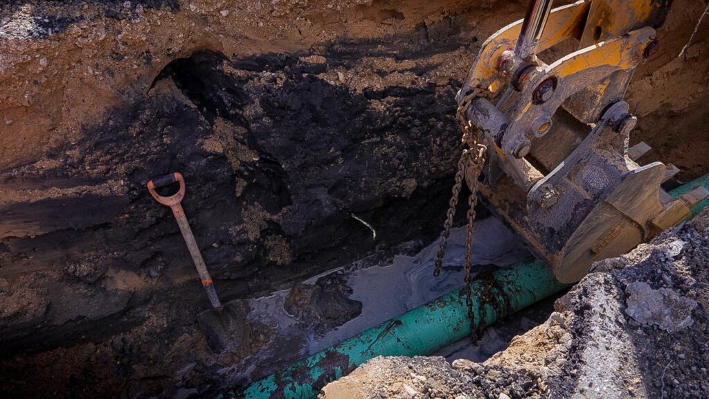 Cuadrillas del departamento de Alcantarillado laboraron por más de seis horas en el cruce de las calles Oro y María Martínez, donde fue necesaria una excavación a dos metros de profundidad, utilizando maquinaria especializada, como una retroexcavadora, un camión de inyección y succión (Vactor) y un camión de volteo, informó el ingeniero Iván Gaytán, coordinador del distrito 3 de Alcantarillado.