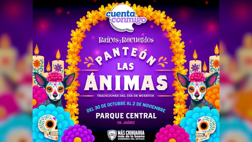 El Gobierno del Estado, a través de la Secretaría de Hacienda, reitera su invitación para que, del 30 de octubre al 2 de noviembre, las y los juarenses disfruten de la celebración del Día de Muertos con el evento de altares “Raíces y Recuerdos: Panteón las Ánimas”, que se llevará a cabo en el Parque Central Poniente de Ciudad Juárez.