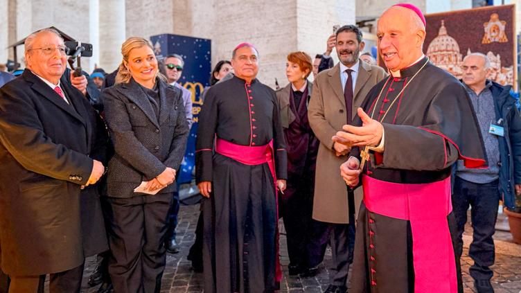 Externó su agradecimiento al Cardenal Rino Fisichella, Pro Prefecto del Dicasterio para la Evangelización, por su recepción, así como a Alberto Barranco, embajador, por acompañar en el evento «100 Presepi in Vacticano».
