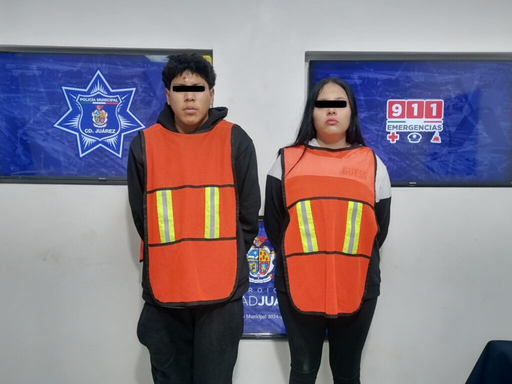 Ante el señalamiento directo, se procedió al arresto dequienes dijeron llamarse Ángel Ramiro R. P. de 18 años y Sheyla V. P. de 21 años, mismos a los que se le aseguró un arma de fuego calibre 9 milímetros, con un cargador abastecido con cinco cartuchos útiles, así como una caja negra que contenía la cadena presuntamente robada con lujo de violencia.