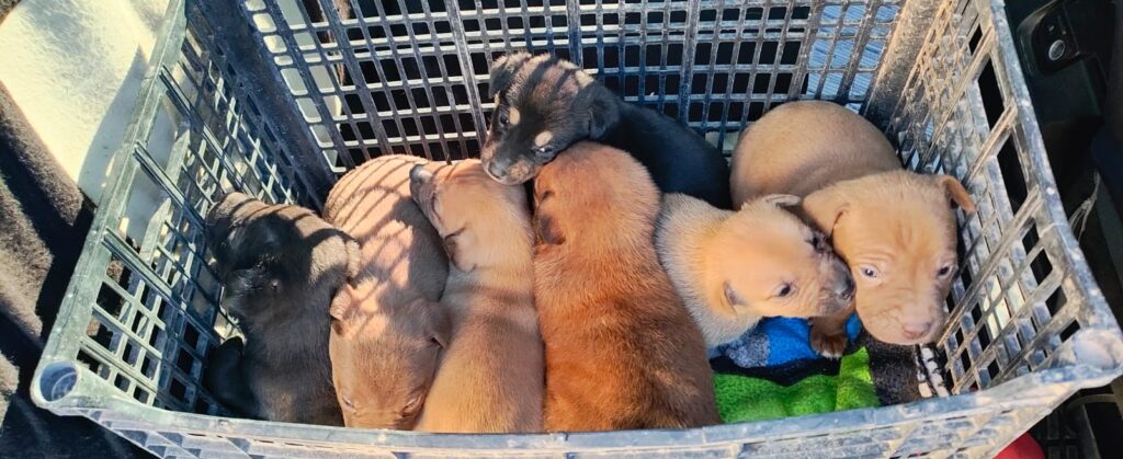 A 10 de diciembre de 2025.- En una acción humanitaria agentes de la Secretaría de Seguridad Pública Municipal adscritos al Distrito Universidad, resguardaron a siete cachorros que fueron abandonados en la vía pública.