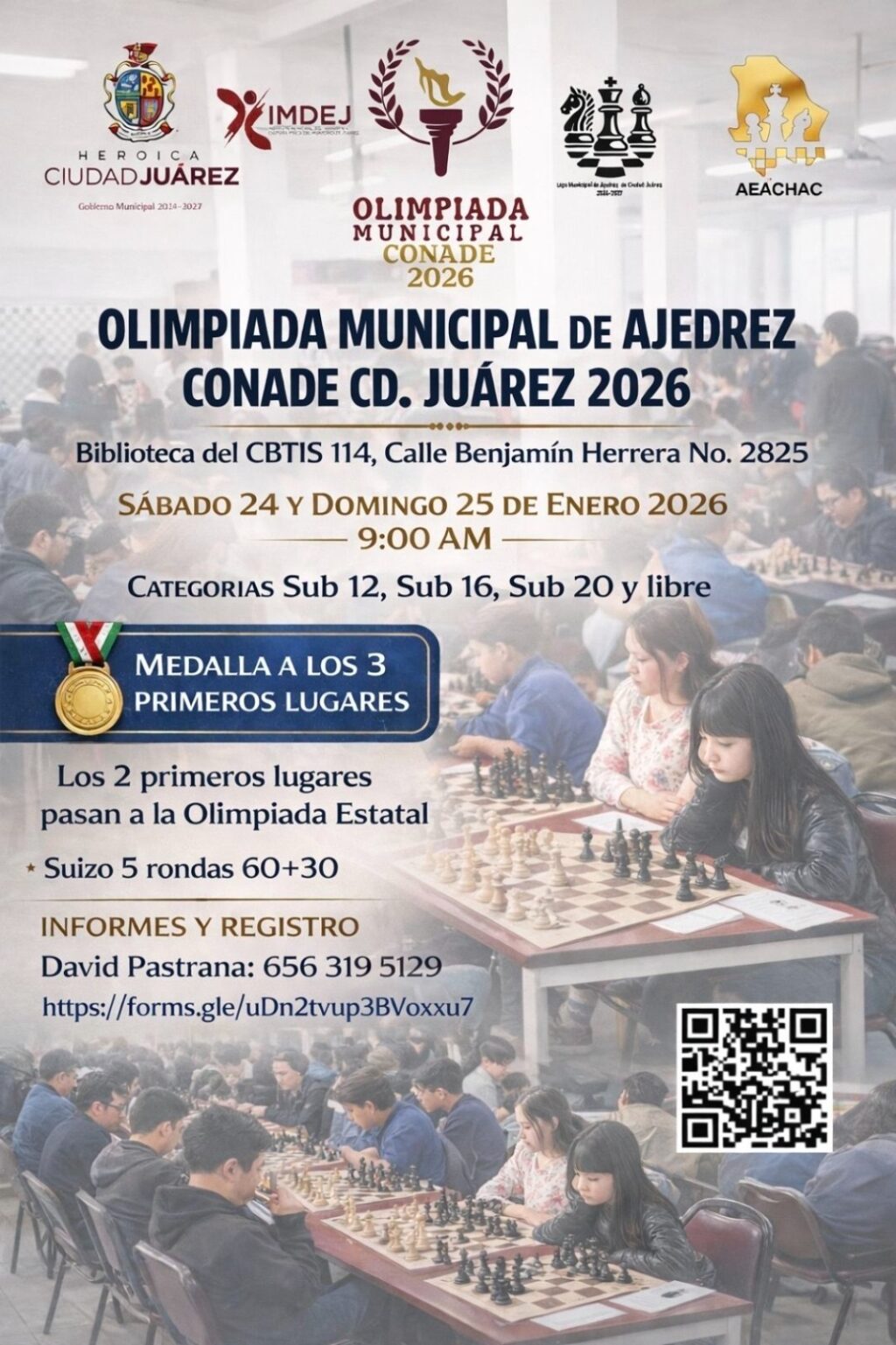 En esta ocasión se tendrán las categorías Sub 12, Sub 16, Sub 20 y Libre, las cuales competirán en la biblioteca del Centro de Bachillerato Tecnológico Industrial y de Servicios (CBTIS) 114, con una premiación de medalla para los 3 primeros lugares de cada categoría; premios en efectivo en la categoría libre y clasificación a Olimpiada Estatal con uniforme de Juárez y transporte a los 2 primeros lugares de las categorías Subs.