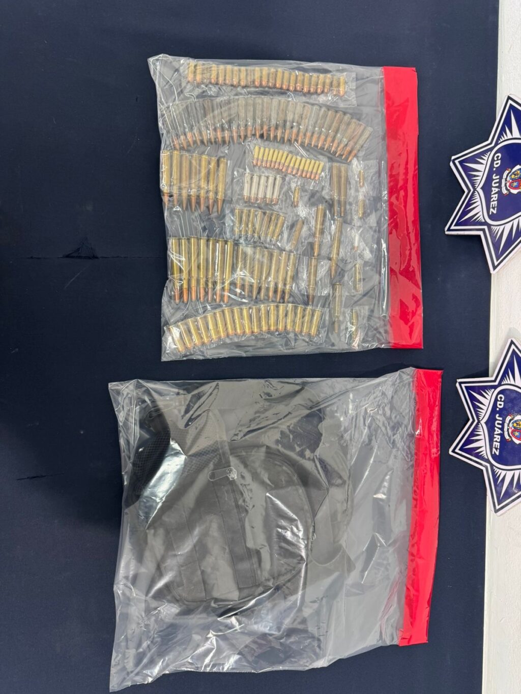 A 15 de enero de 2026.- Elementos de la Secretaría de Seguridad Pública Municipal adscritos a la Estación de Policía del Distrito Valle, aseguraron más de cien cartuchos útiles que se encontraban abandonados en la vía pública.