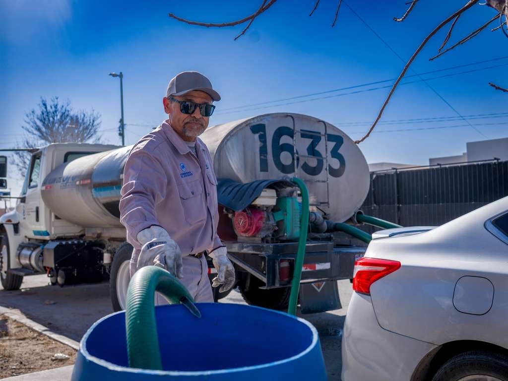 La Junta de Agua y Saneamiento de Juárez informa que la mañana de este viernes se realizó la entrega de 9 mil litros de agua potable mediante pipas a las familias de la colonia Pedregal de San Isidro.