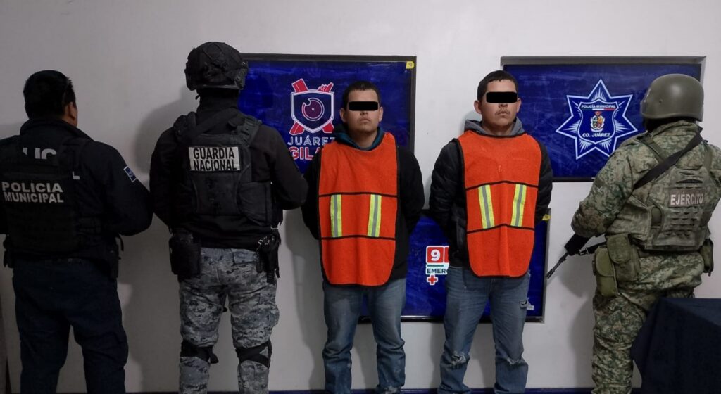 A 29 de enero de 2026.- Agentes adscritos a las Bases de Operaciones Interinstitucionales, en el marco del plan estratégico de seguridad implementado en la ciudad, lograron la detención de Carlos Daniel S. M. y Jesús Manuel S. S., por su probable responsabilidad en la comisión de delitos contra la ley federal de armas de fuego y explosivos.