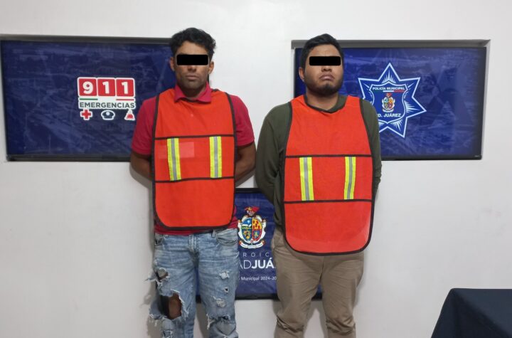 A 04 de marzo de 2026-. Elementos de la Secretaría de Seguridad Pública Municipal arrestaron a Luis Ángel F H. e Iván T. V., por su presunta...