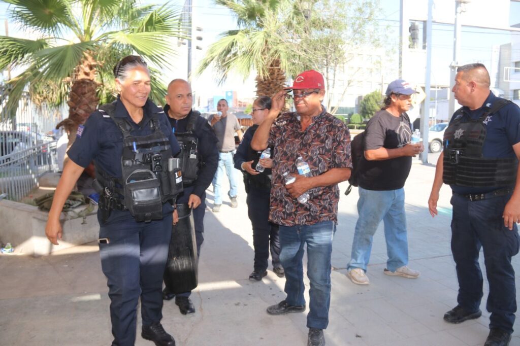 Como una actividad extraordinaria, además de sus labores de servir y proteger a la ciudadanía los policías municipales, esta tarde se dieron la tarea de llevar el vital líquido hidratante para cientos de juarenses que estaban expuestos a las inclemencias del Sol por diferentes razones.
