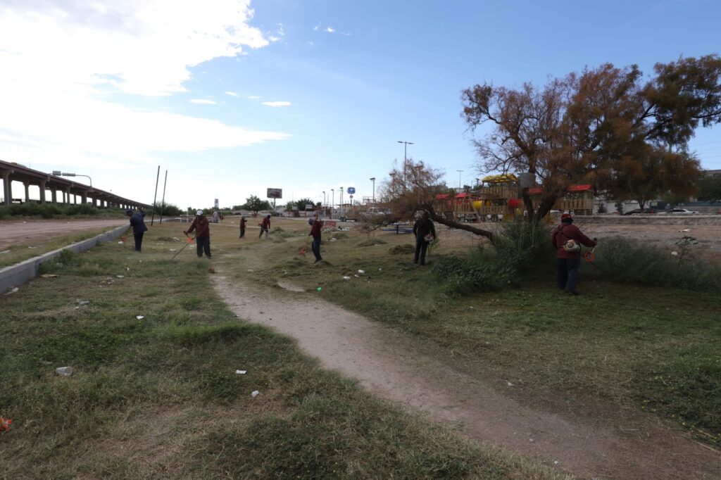 El titular de la dependencia, Daniel Zamarrón Saldaña, informó que las labores comprendieron limpieza general, corte de maleza, poda formativa de árboles y retiro de residuos, con el propósito de mantener en buen estado este espacio público que es punto de encuentro para familias y visitantes de la zona.
