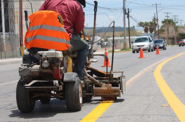 Personal del área de Control de Tráfico de la Coordinación General de Seguridad Vial pintó el eje central de la...
