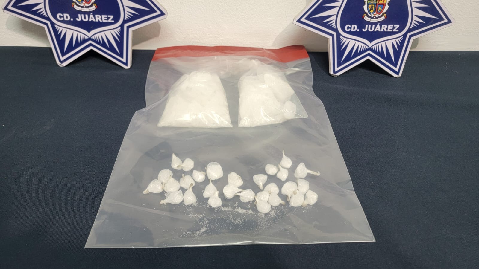 Motivo por el cual se le marcó el alto al conductor por protocolos de seguridad en el cruce del bulevar Oscar Flores Sánchez y calle Zacatecas, en donde se les realizó una inspección preventiva a los tripulantes, en la cual se les localizó dentro del automotor dos envoltorios de plástico con aproximadamente 200 gramos de cristal y la cantidad de 28 dosis de la misma sustancia, procediendo con su detención.