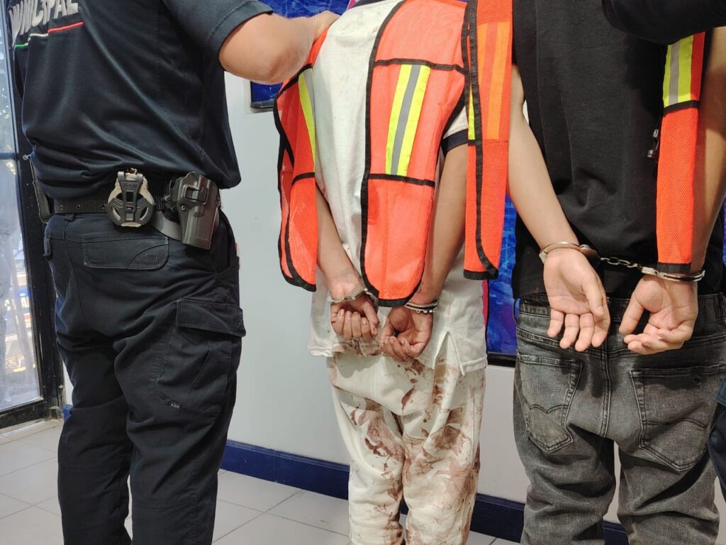 Durante las labores de inspección, los agentes detuvieron a dos adolescentes identificados de 14 y 17 años, quienes se encontraban en el lugar y presentaban manchas de sangre en sus prendas de vestir, asimismo, se localizó un tubo metálico con manchas rojizas, presuntamente utilizado durante la agresión.