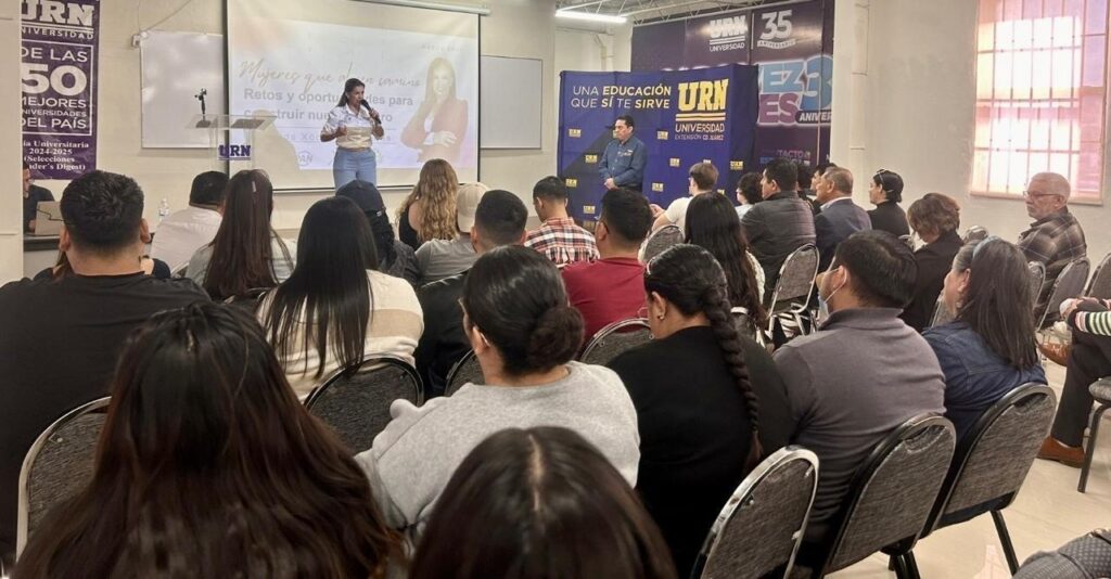 Ciudad Juárez, Chih.- En el marco del Mes de la Mujer, la diputada por el Partido Acción Nacional (PAN,m), Xóchitl Contreras, sostuvo un encuentro cercano con estudiantes de preparatoria y licenciatura de la Universidad Regional del Norte (URN), donde compartió su experiencia en el servicio público, los retos que ha enfrentado como mujer en la política y la importancia de que las nuevas generaciones participen activamente en la construcción de una mejor comunidad.