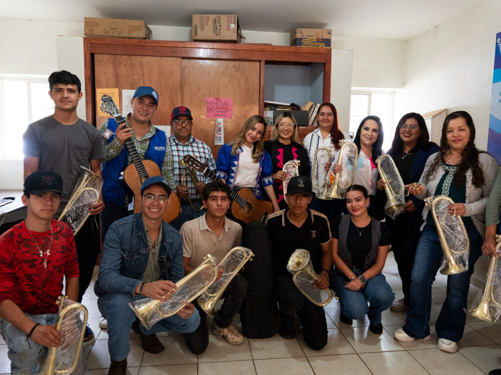 Se otorgaron 30 mil 600 pesos a 14 jóvenes. De ese monto, 16 mil 600 fueron entregados en especie mediante instrumentos para la banda de guerra del Telebachillerato Estatal 86150.