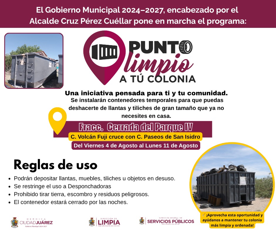 En un esfuerzo por promover la limpieza, la seguridad y la higiene en las colonias juarenses, el Gobierno Municipal, a través de la Dirección de Limpia, instaló tres nuevos Puntos Limpios en distintos sectores de la ciudad.