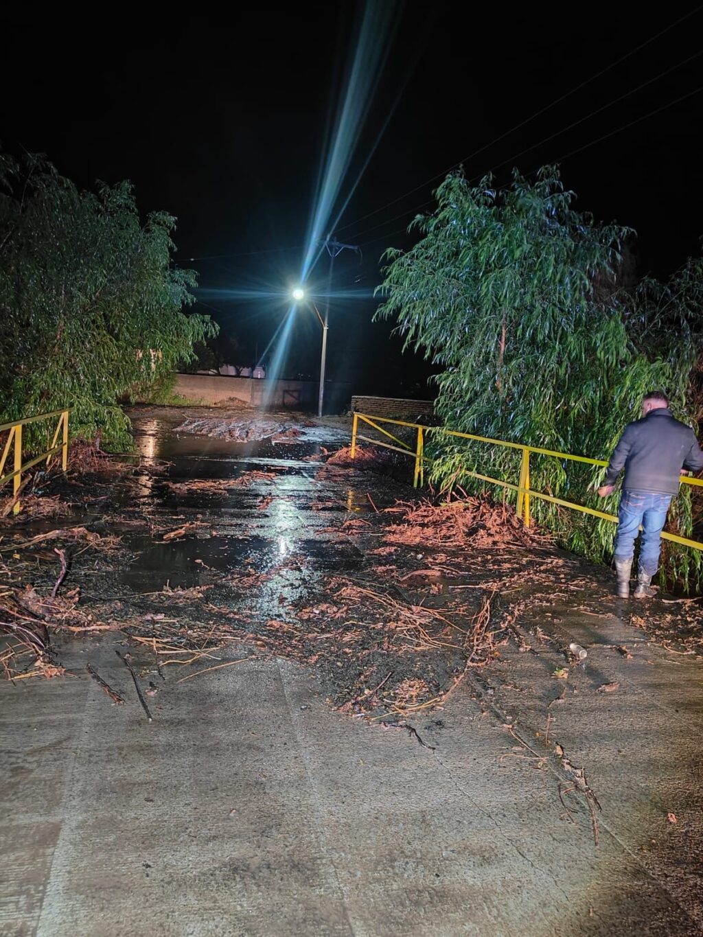 En Riva Palacio, la lluvia provocó escurrimientos sobre el puente de la carretera Ojo de la Yegua.
