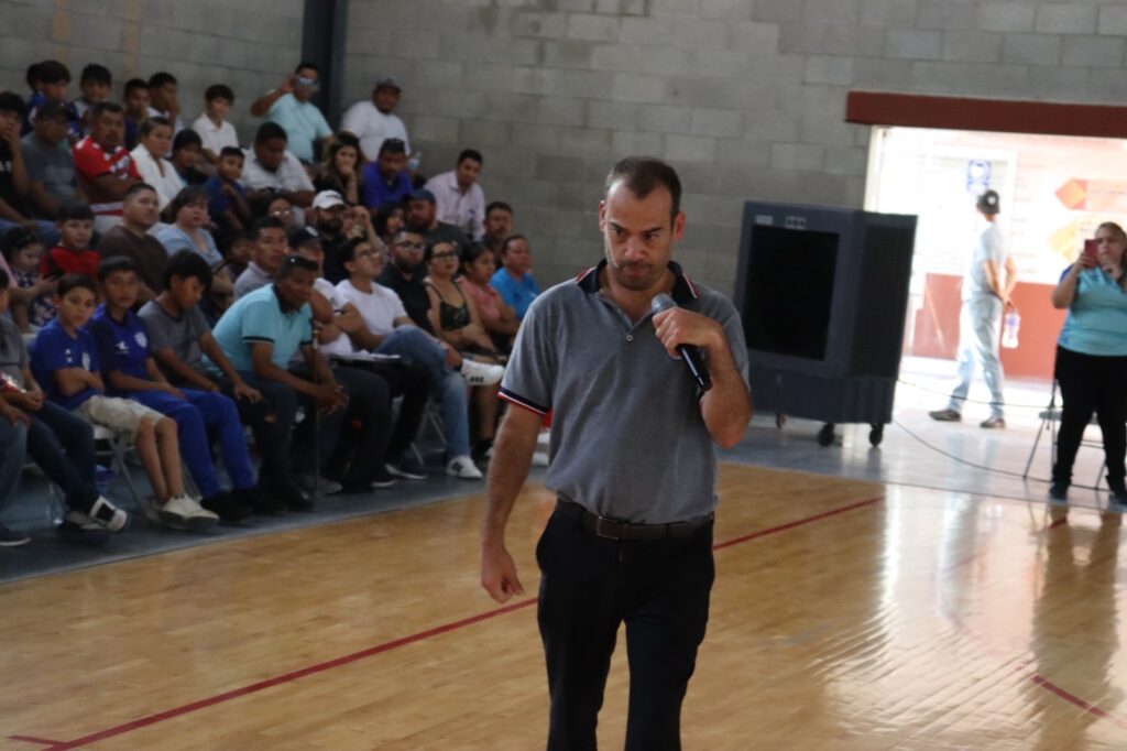 Momentos de su vida, frases motivacionales y consejos para ser una mejor persona fueron los temas principales que abordó durante su presentación, que se realizó en el Gimnasio Municipal Fernando Tizcareño.