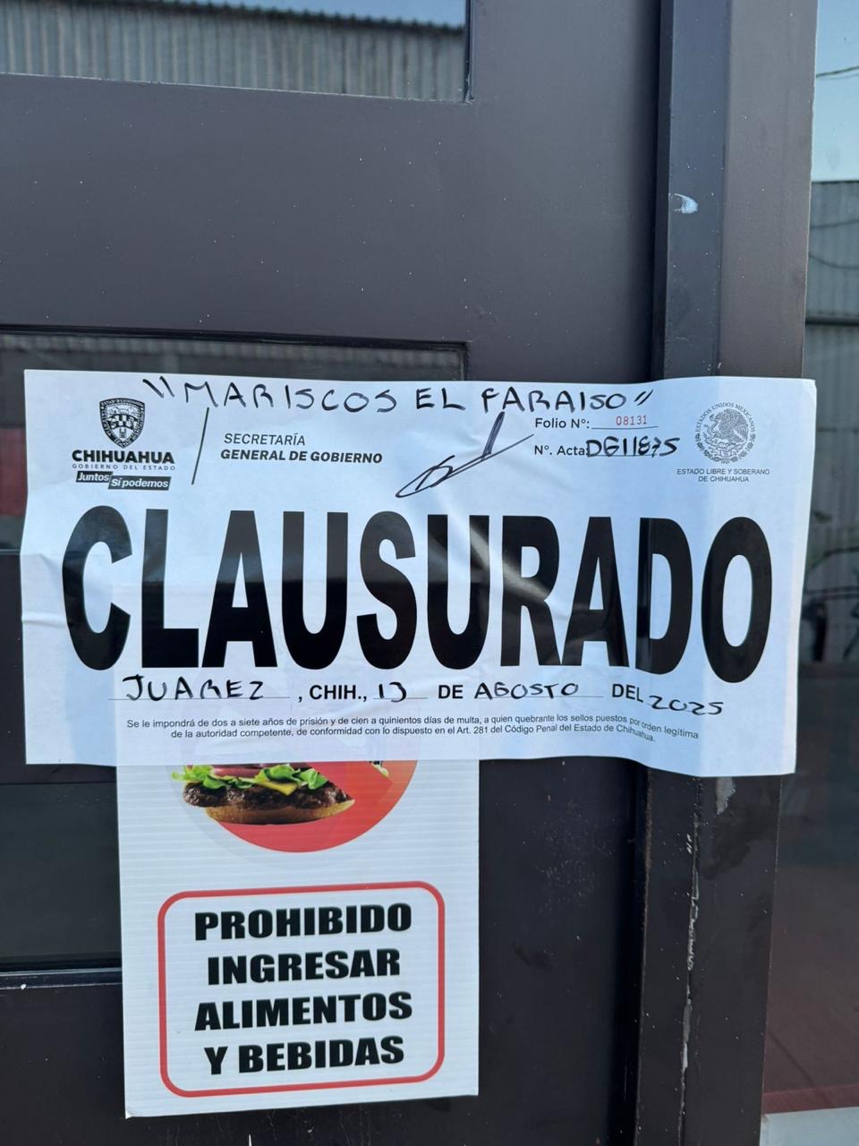 Estas acciones dieron como resultado un total de 19 clausuras, cuatro fueron en Chihuahua y quince en Ciudad Juárez.