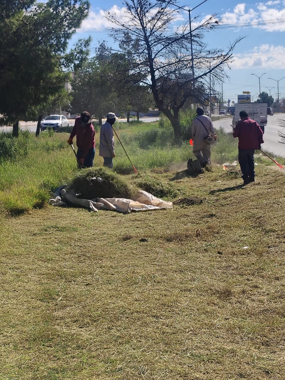 Cuadrillas de la Dirección de Parques y Jardines realizaron labores de limpieza y mantenimiento en el camellón central de la avenida Ejército Nacional, en el tramo que va de Paseo de la Victoria a la Manuel Gómez Morín.