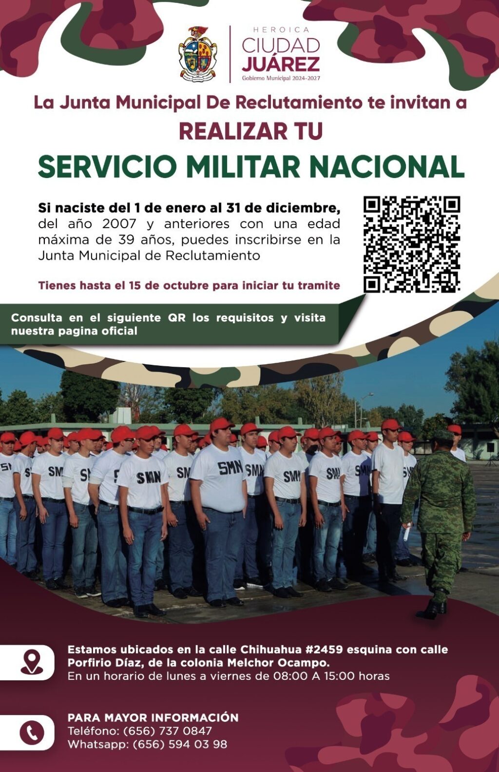“Invito a todos los mexicanos de la clase 2007, nacidos del 1 de enero al 31 de diciembre de dicho año y remisos con edad máxima de 39 años, a que se inscriban, ya que tienen hasta el 15 de octubre para hacerlo”, expresó.